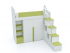 Nowoczesne łóżko o kompaktowym charakterze. Idealne do niewielkich pomieszczeń, gdzie liczy się każdy centymetr wolnej przestrzeni. Zestaw zawiera szafę, dwa regały oraz zamykaną szafkę z półką. W każdym stopniu schodków mieści się schowek. Dodatkowo boki schodków mieszczą 4 zamykane szafki oraz 2 otwarte półki. Wnętrze szafy wyposażone jest w dwie dolne szuflady o wysokości 16 cm, nad którymi po prawej stronie znajdują się półki, a po lewej drążek. Korpus łóżka dostępny jest w wykończeniu białym lub jasno-szarym. Dodatki występują w kolorach: żółtym, pomarańczowym, limonkowym, niebieskim, liliowym, turkusowym oraz różowym.
